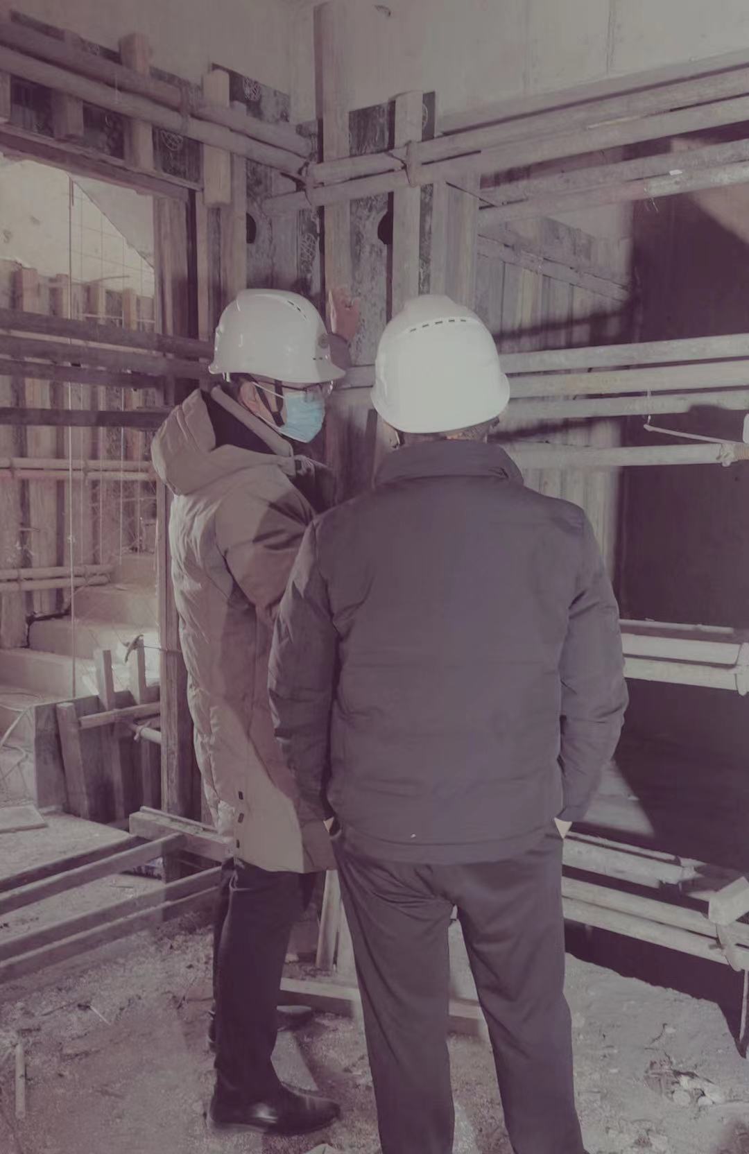 隨后,王總一行在公司領導陪同下到項目施工現場進行實地考察,就現澆輕質泡沫混凝土墻體的施工工藝進行了詳細的討論,王總對泡沫混凝土現澆墻體的垂直平整度、施工速度以及施工現場贊嘆不已。